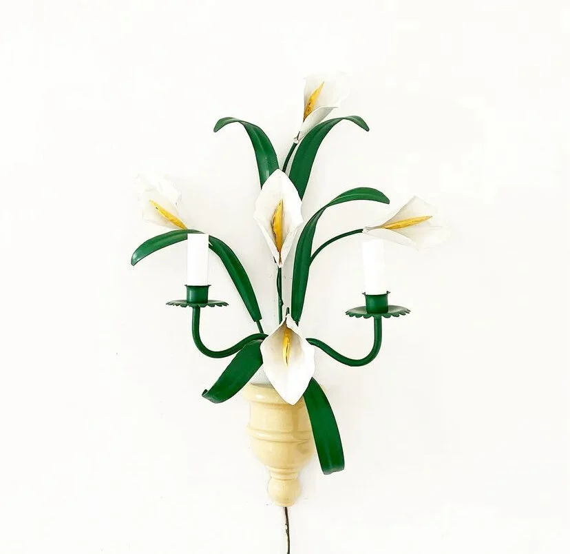 Applique Fleurs d'arums, électrifiée reliée à un fil et une prise.