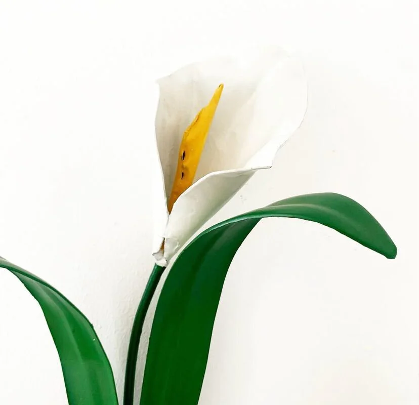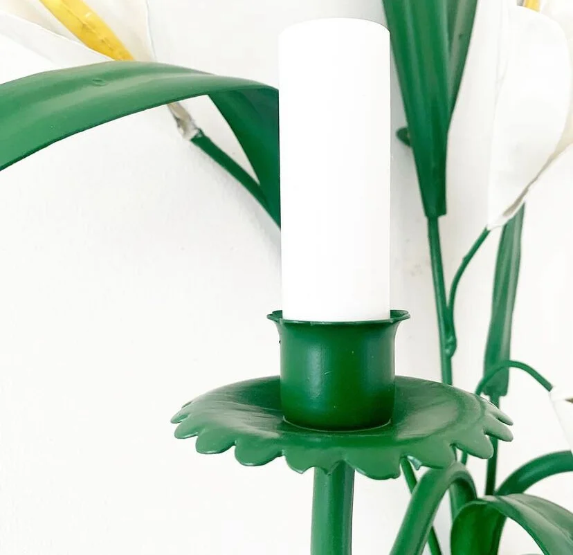 Applique Fleurs d’arums, électrifiée reliée à un fil et une prise.