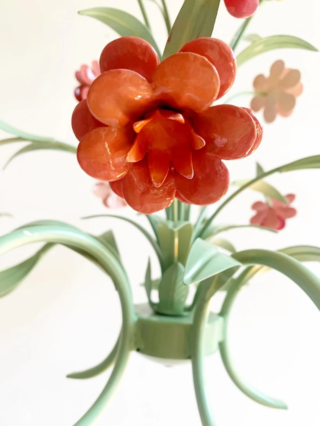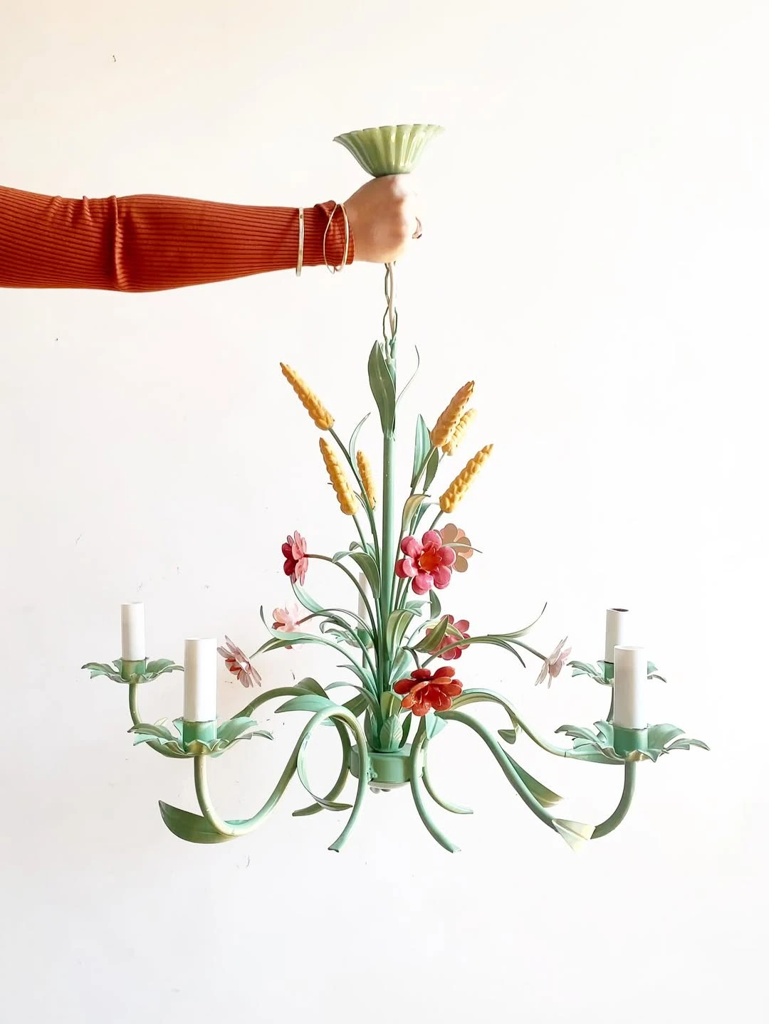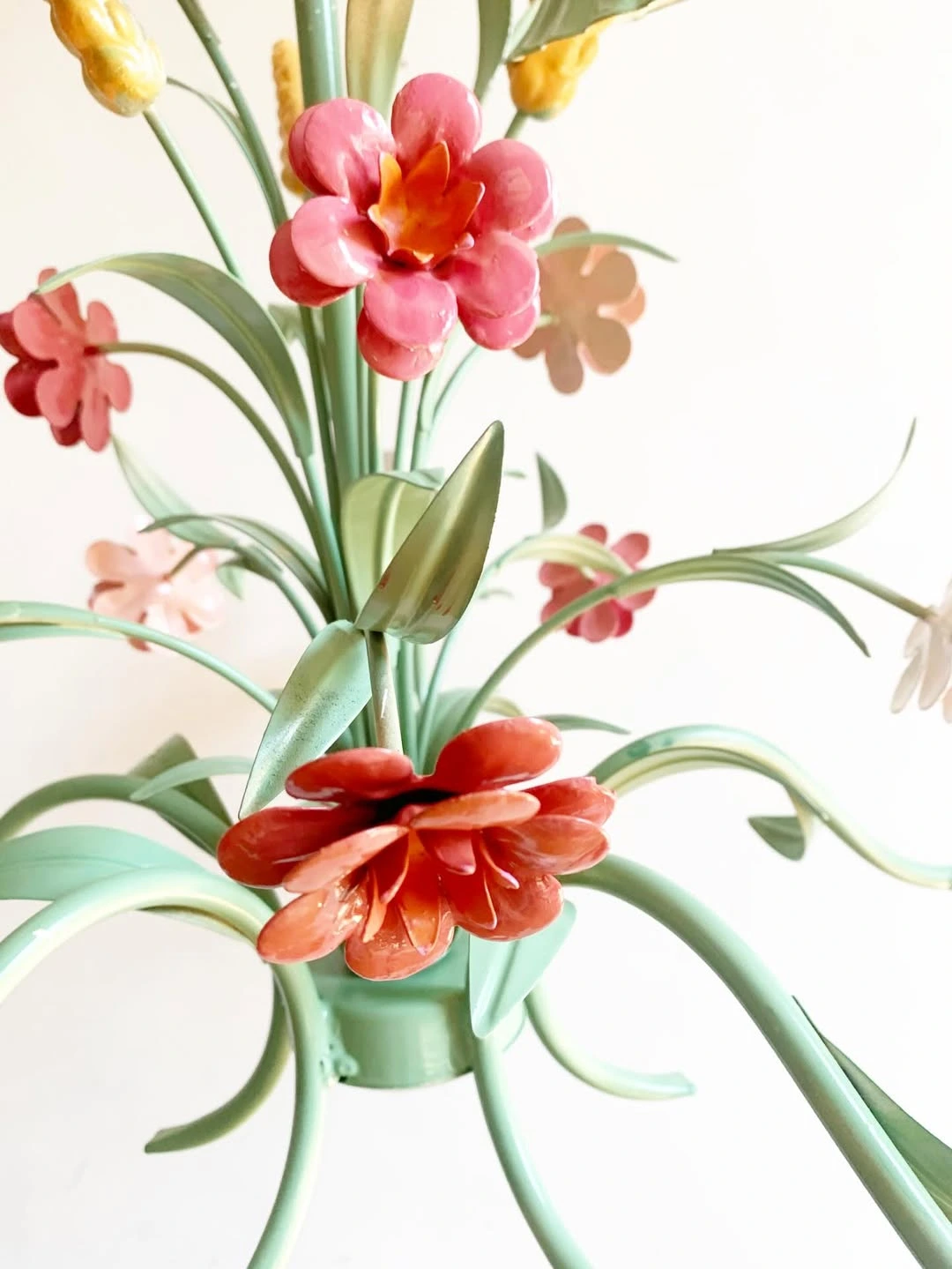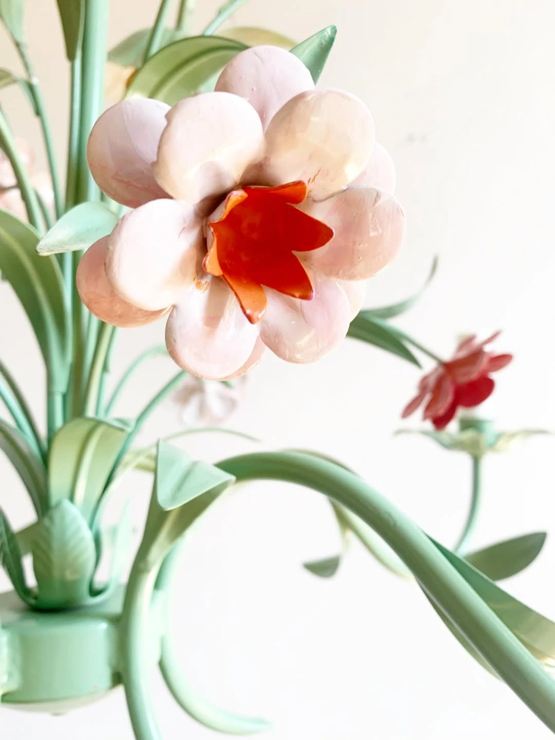 Ce lustre floral vintage printemps métal peint a été restauré.