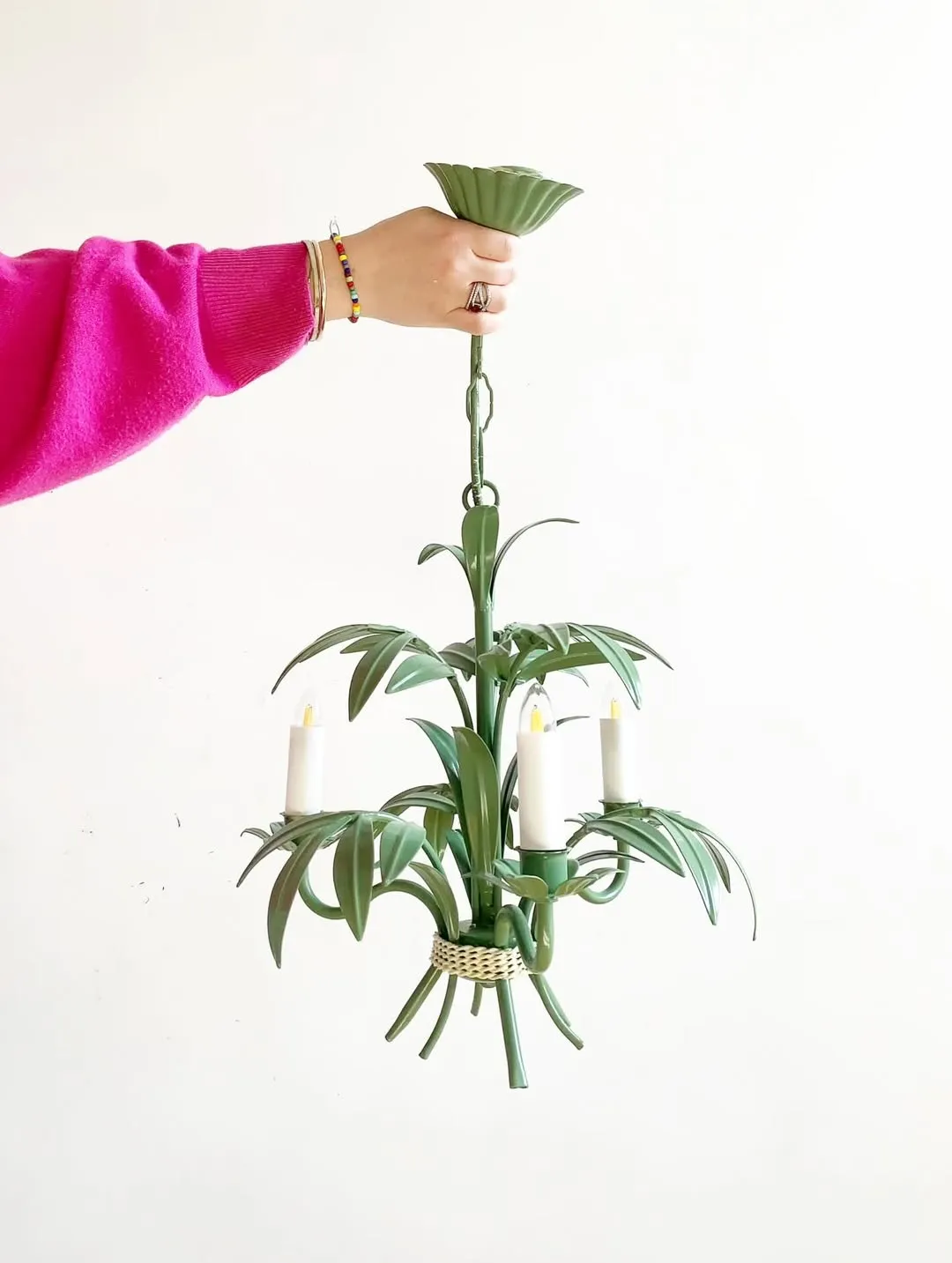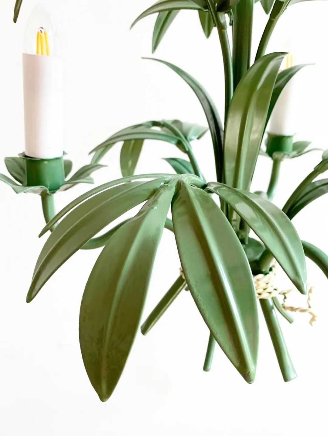 Vintage palm tree chandelier in painted metal, European mid-century work.