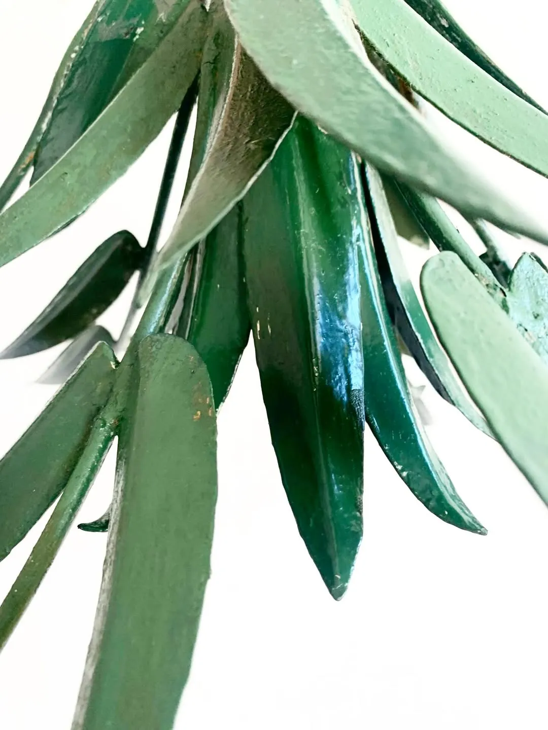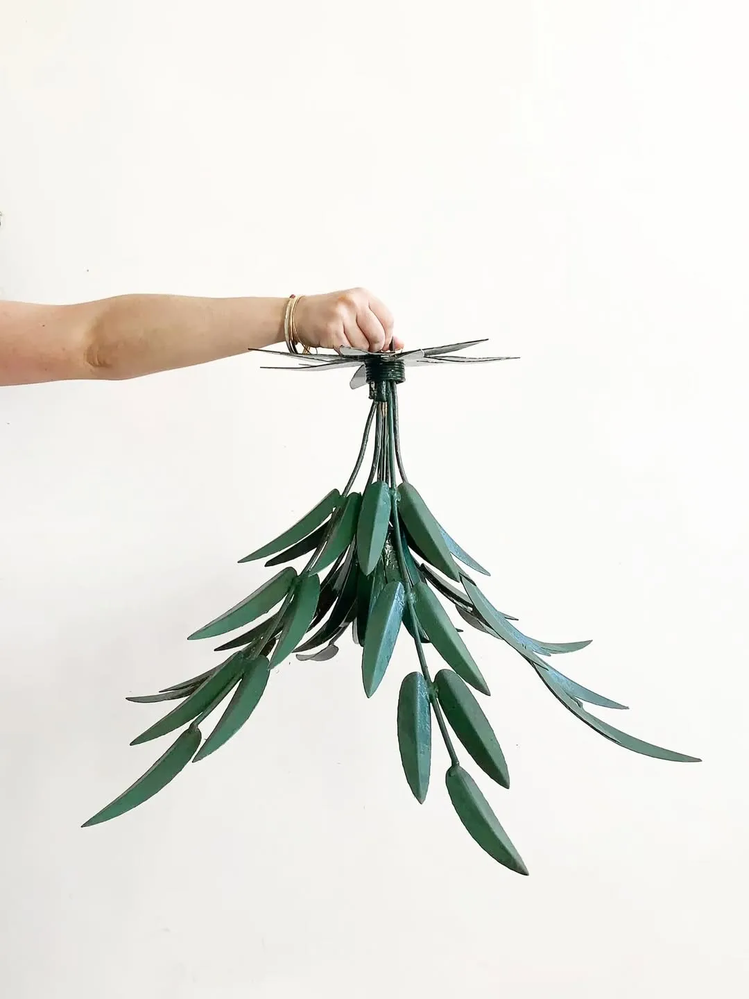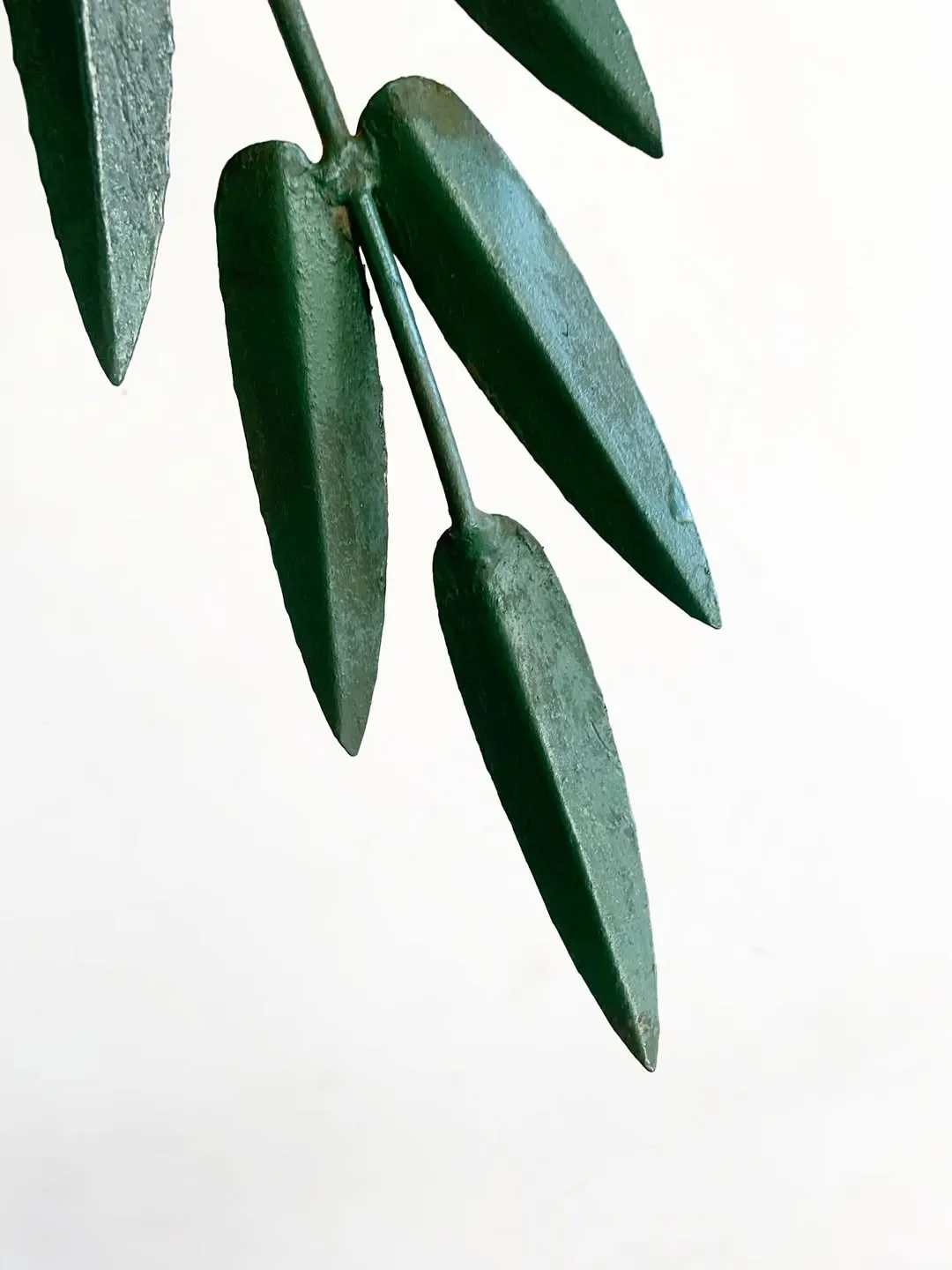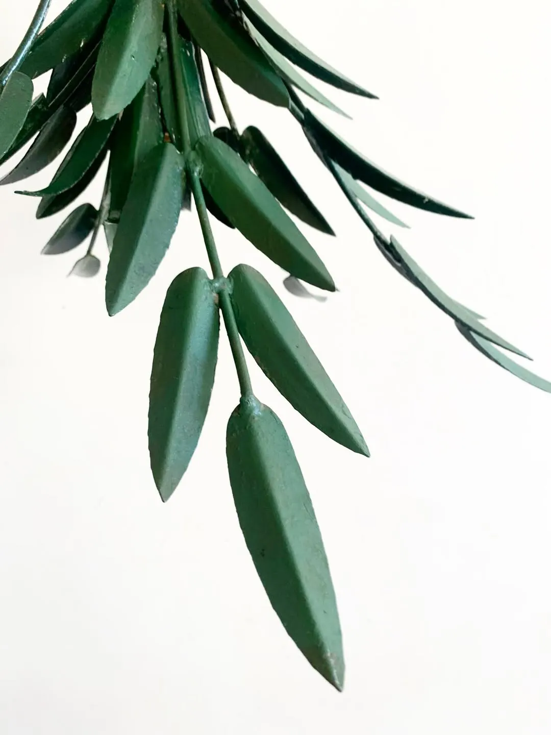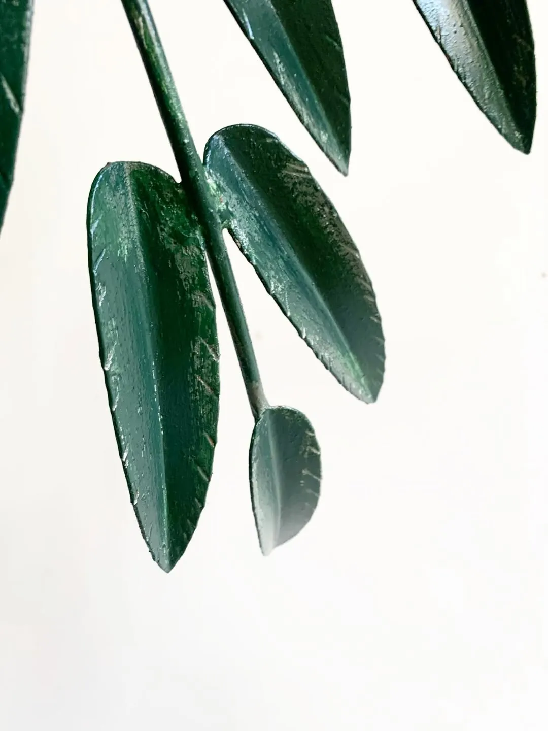 Vintage willow branch chandelier in painted metal, European mid-century. Single light source with elegant elongated leaves. Restored and rewired.